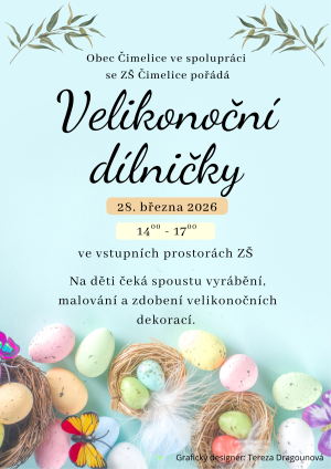 28.3.pořádá Obec Čimelice a ZŠ Čimelice Velikonoční dílničky. Od 14h do 17h si můžou děti i dospělí přijít vyrobit velikonoční dekoraci, nazdobit si třeba vázu nebo velikonoční vajíčko či sladké vajíčko. Srdečně zveme!